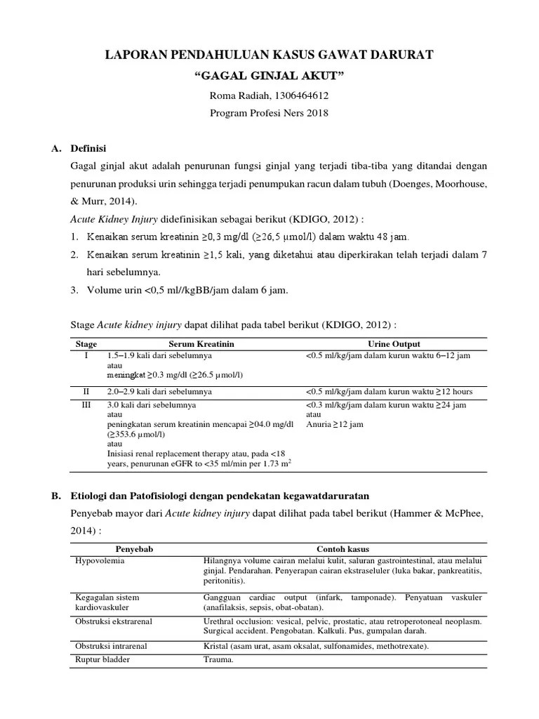 Contoh Laporan Kasus Gagal Ginjal Akut - Format Laporan PTM | PDF - Gagal ginjal akut (gga) merupakan suatu sindrom klinis yang di tandai dengan fungsi ginjal yang menurun secara cepat (biasannya dalam beberapa hari).. Gagal ginjal akut (gga) merupakan suatu sindrom klinis yang di tandai dengan fungsi ginjal yang menurun secara cepat (biasannya dalam beberapa hari). Bila yang lain dalam kelompok. Penatalaksanaan gagal ginjal akut (acute kidney injury) bersifat suportif, yaitu perbaikan cairan, tekanan darah, elektrolit dan terapi . Gagal ginjal akut laporan pendahuluan asuhan keperawatan pada klien dengan gagal ginjal akut disusun oleh selfa harsai program studi profesi ners jurusan. Diajukan untuk memenuhi salah satu syarat dalam.